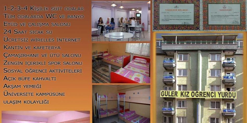 Özel Güler Yüksek Öğrenim Kız Öğrenci Yurdu M.E.B.'na bağlı yurt projesiyle dizayn edilmiş 1.sınıf bir yurttur. Yurdumuzun fiziki yapısı 6 katlı olup 54 oda ve 150 öğrenci kapasiteli, yatak odaları, çalışma ve etüd salonu, bilgisayar laboratuvarı, kantin ve kafeterya, jimnastik salonu bölümleriyle hizmet vermektedir. Süit odalarda kendine ait banyo, lavabo, wc ve duşakabini bulunan yurdumuzda günün 24 saati sıcak su imkanı bulunmaktadır. Uzman diyetisyenler tarafından sabah kahvaltısı ve akşam yemekleriyle de öğrencilerimize hijyenik ortamda lezzetli yemekler sunulmaktadır.Özel Güler Yüksek Öğrenim Kız Öğrenci Yurdu Tek, 2 kişi, 3 kişi, 4 kişilik süit odalarda öğrencilere hizmet vermektedir. Bütün odalarımızda bulunan banyolarda 24 saat sıcak su verilmektedir.Uzman Diyetisyenler tarafından hazırlanan yemek listeleriyle sabah kahvaltısı ve akşam yemeği verilmektedir. Sabah kahvaltısı ve akşam yemeği hijyenik ve sağlıklı bir ortamda hazırlanıp öğrencilerimize sunulmaktadır.1.Sınıf olan yurdumuz M:E.B.'na bağlı olup öğrencilerimiz için en iyi yaşama ve çalışma ortamı sağlamaktan ve en iyi hizmeti vermekten gurur duyarız.
